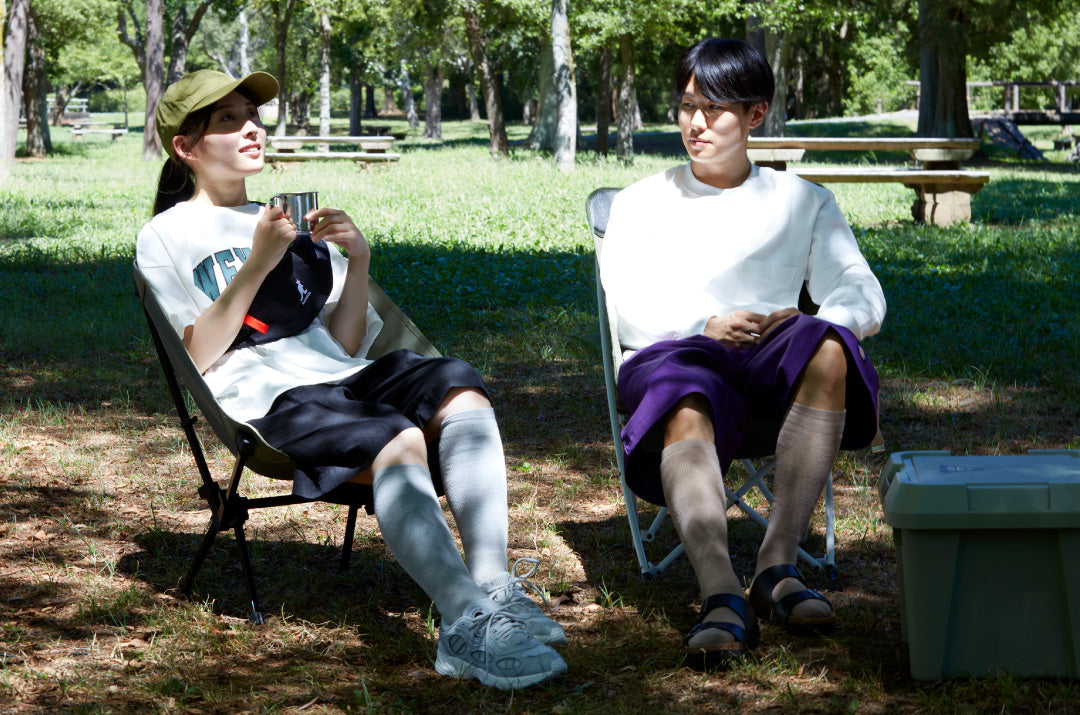 アウトドアの時に心配になる虫刺されや日焼け。「らく圧®」はハイソックス丈なので、ひざ下までしっかり覆ってくれます。