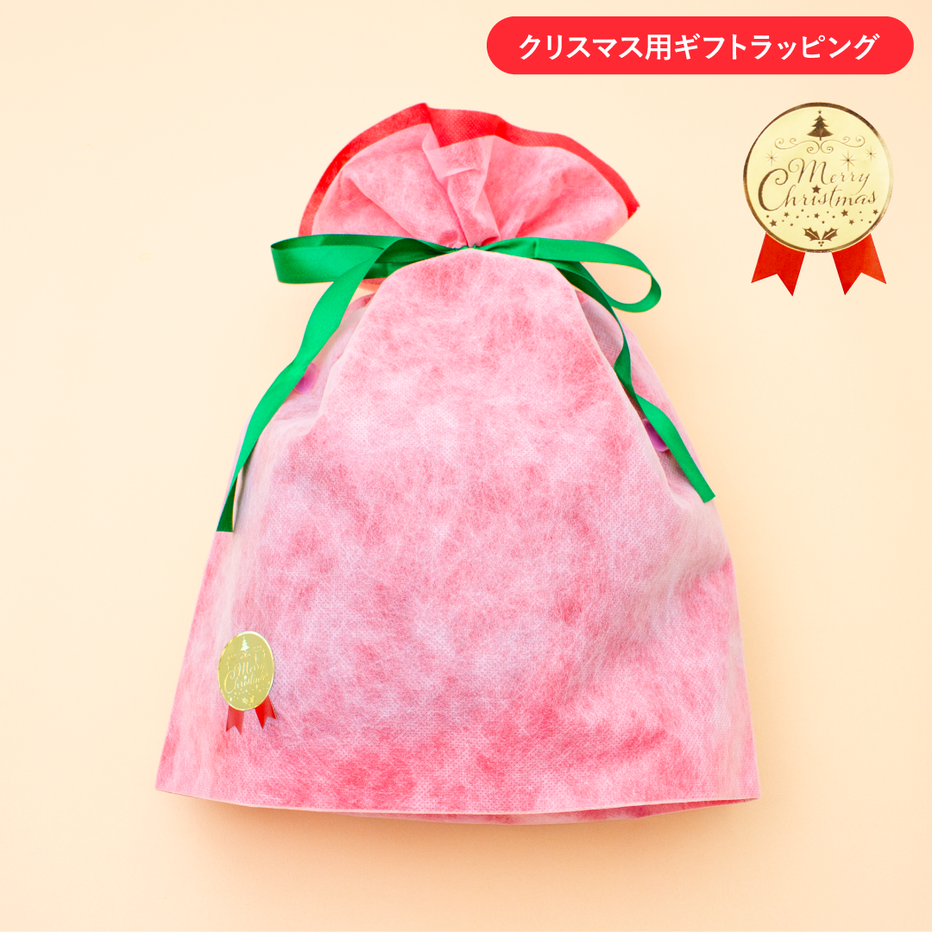 「ギフトラッピング」から「巾着バッグ(クリスマス)」を選択して、商品と一緒にカートに入れてご注文ください。