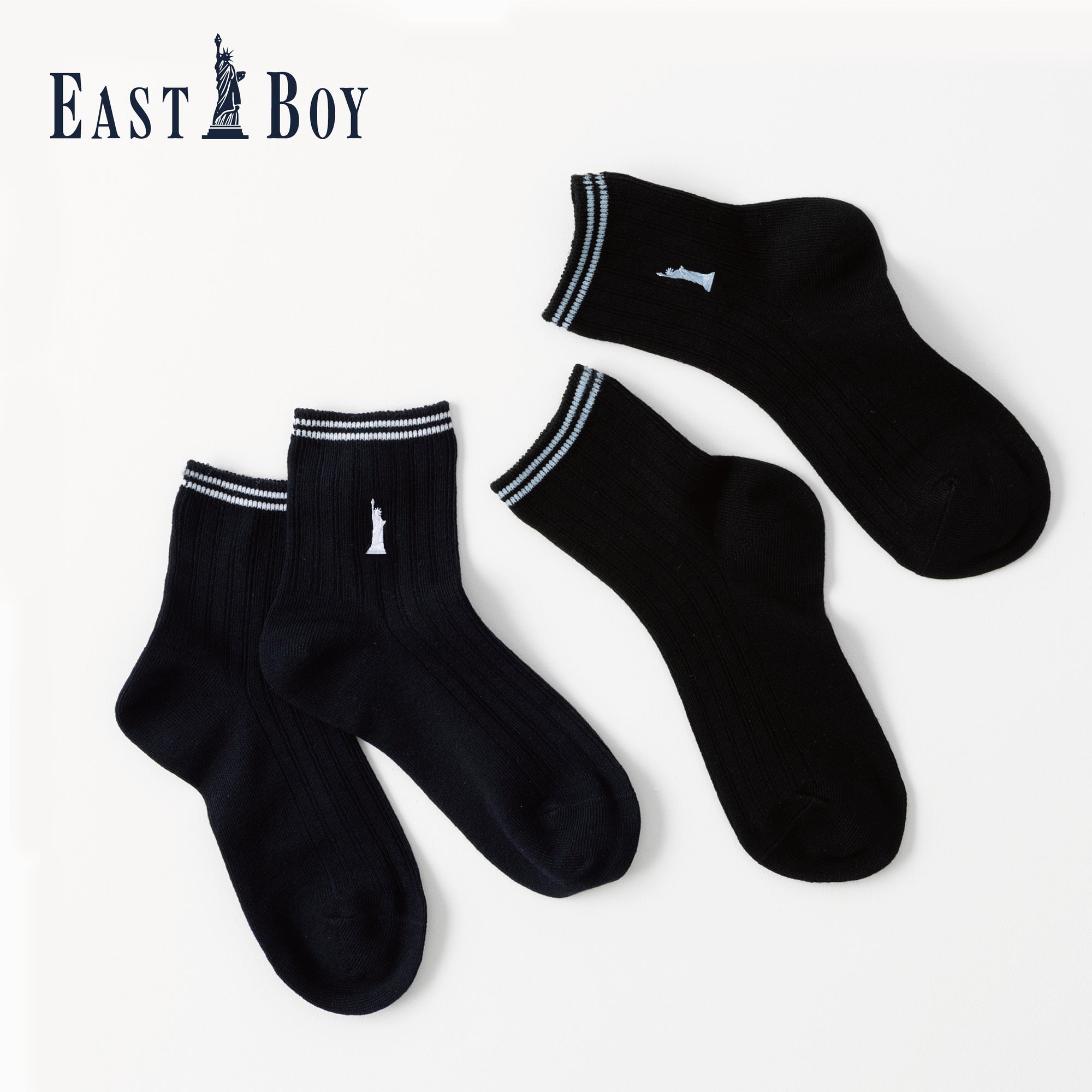 【EASTBOY】32cm丈ワンポイント黒ソックス