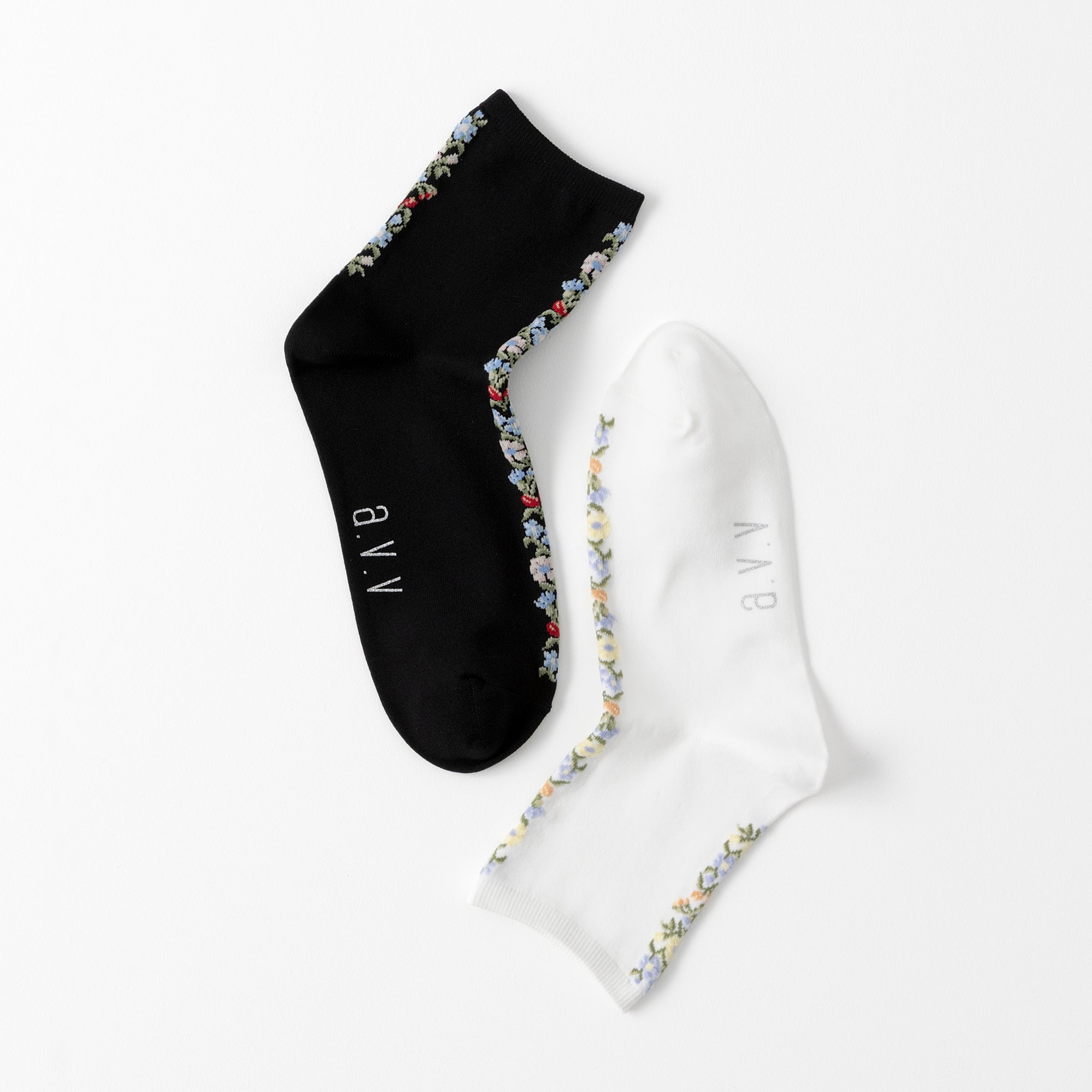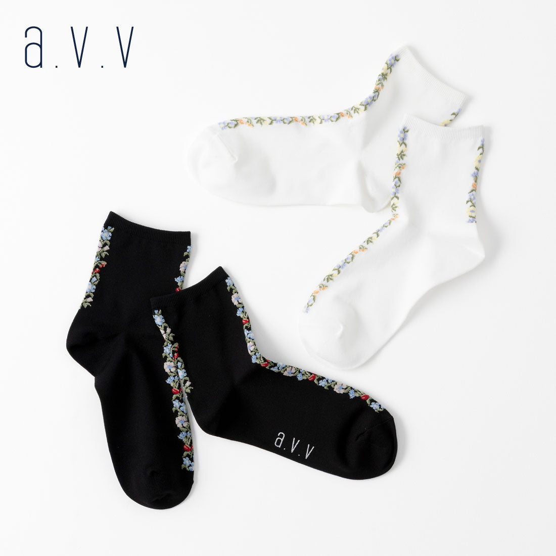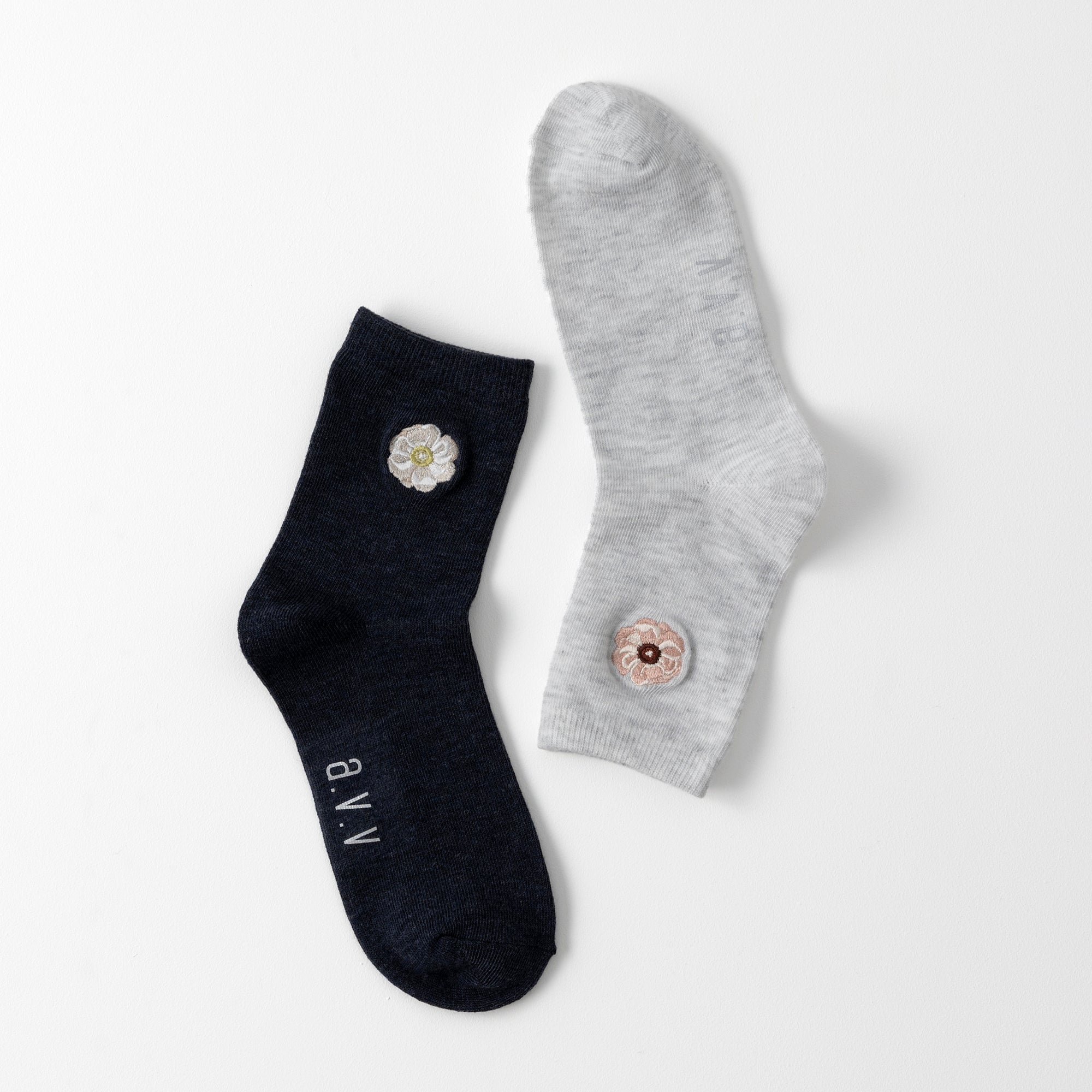 【A.V.V】花刺繍クルーソックス