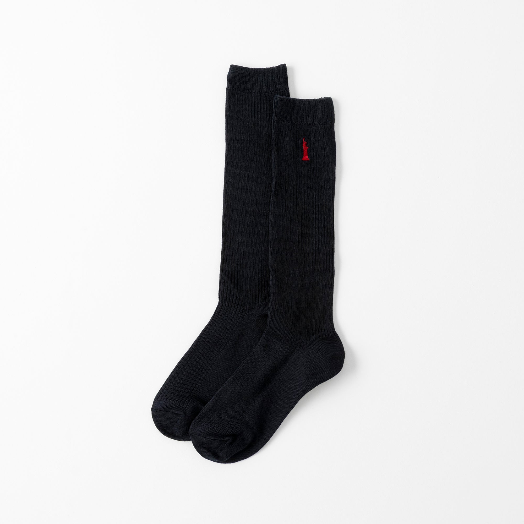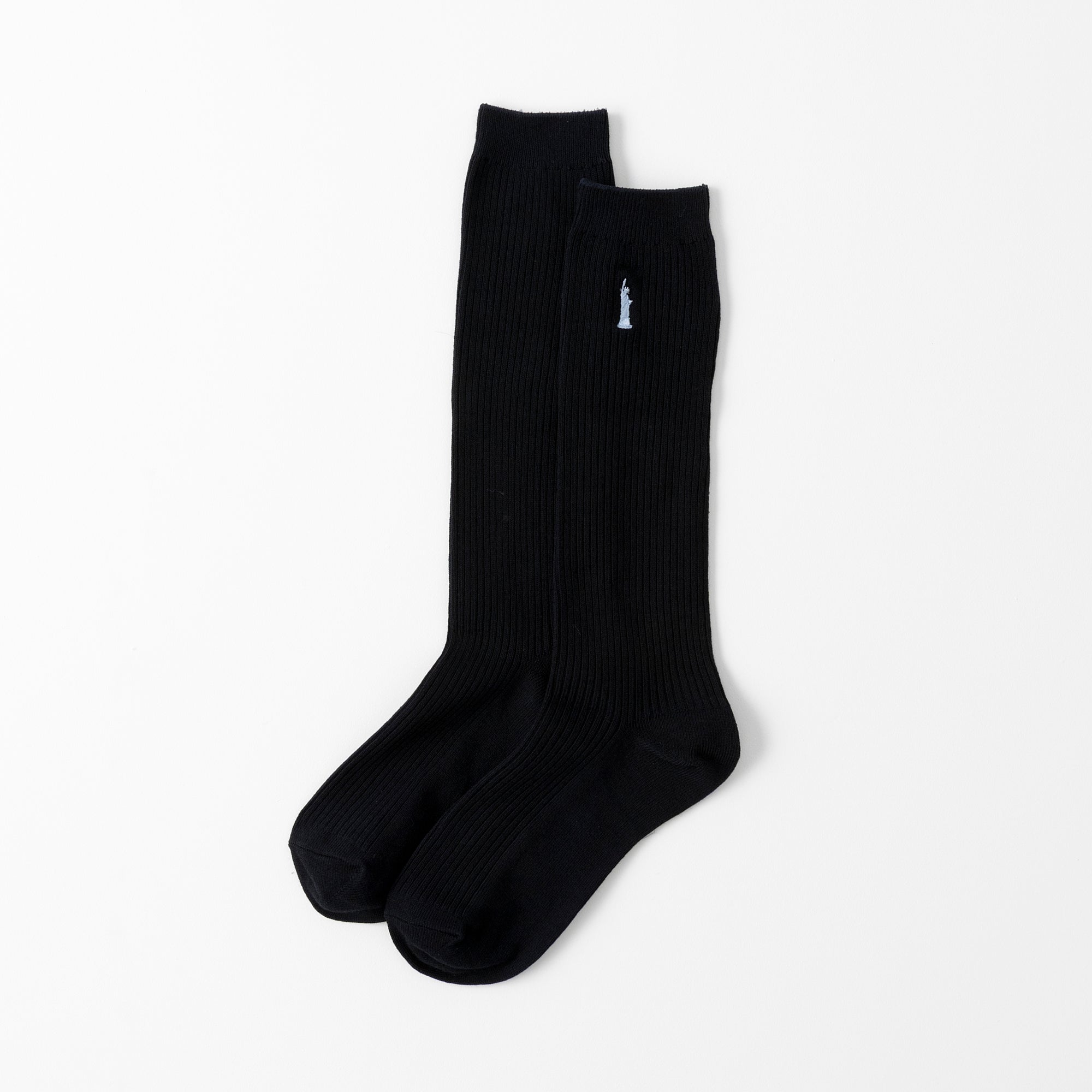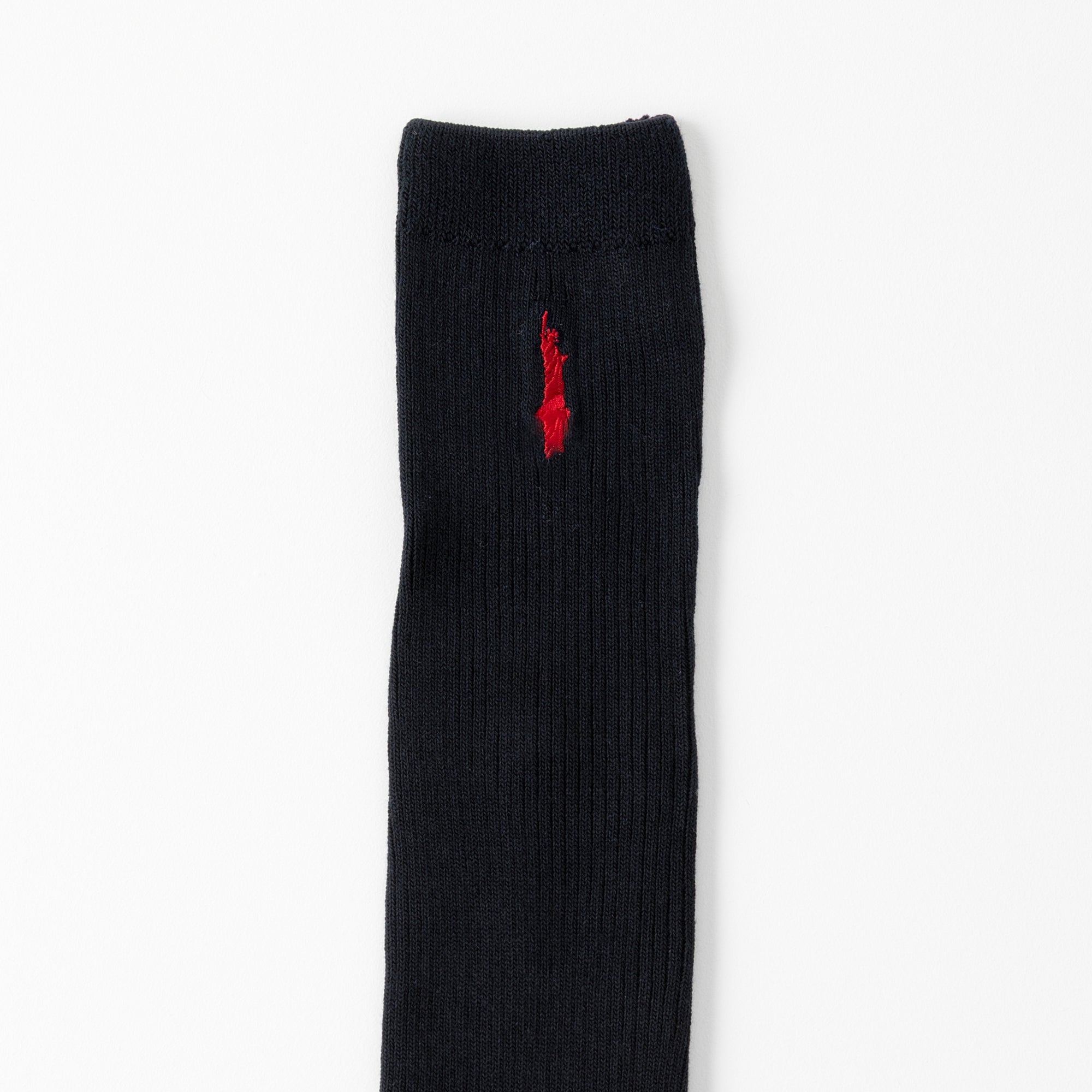定番の女神マークの刺繍を片面に施したスクールソックス。