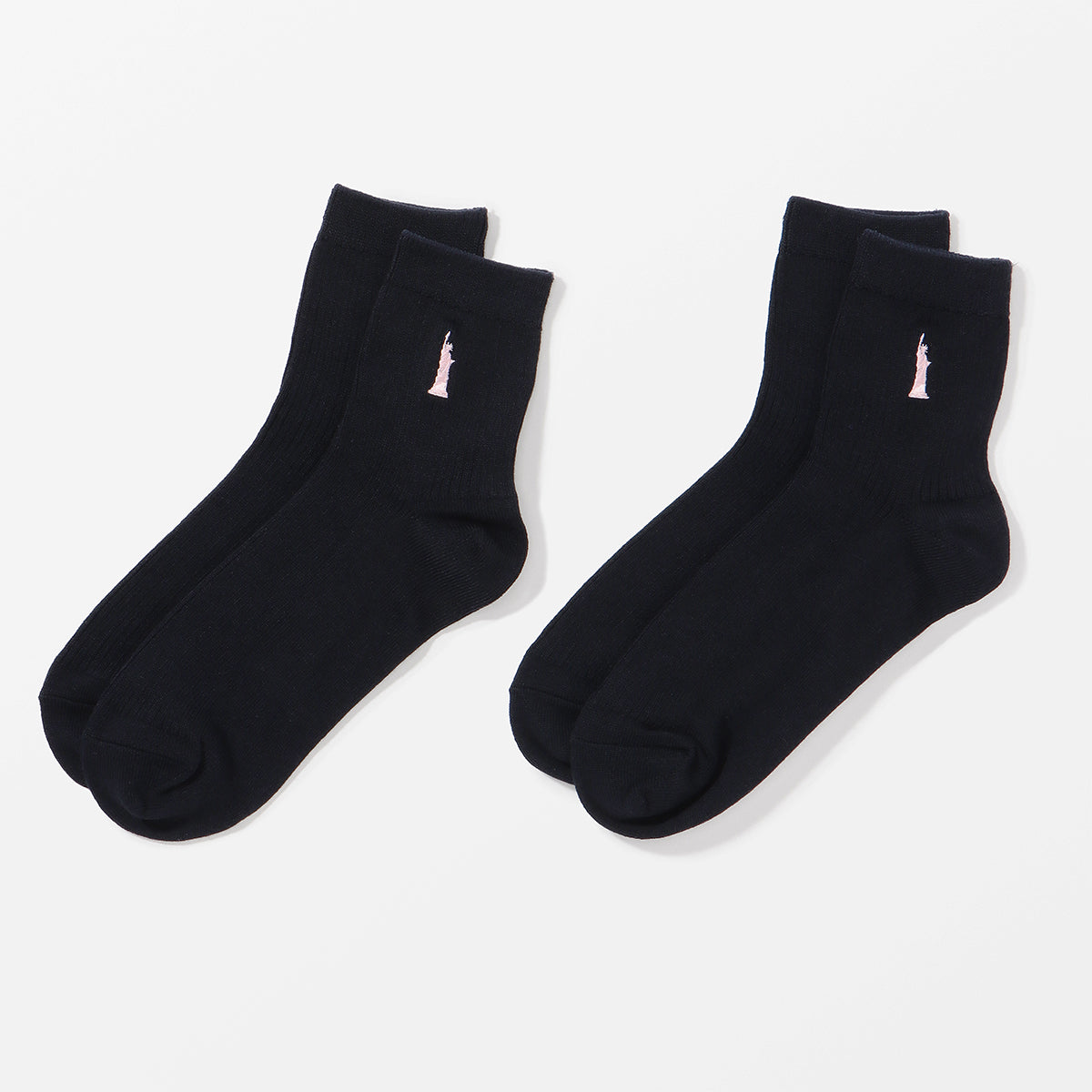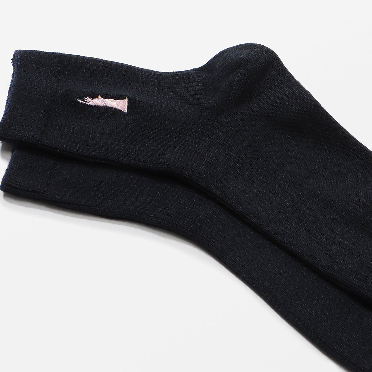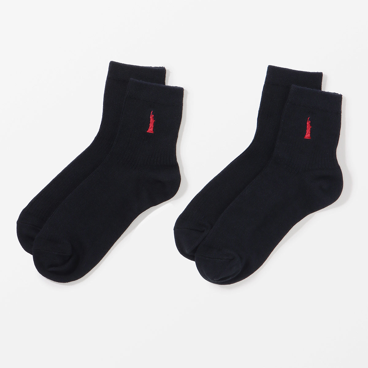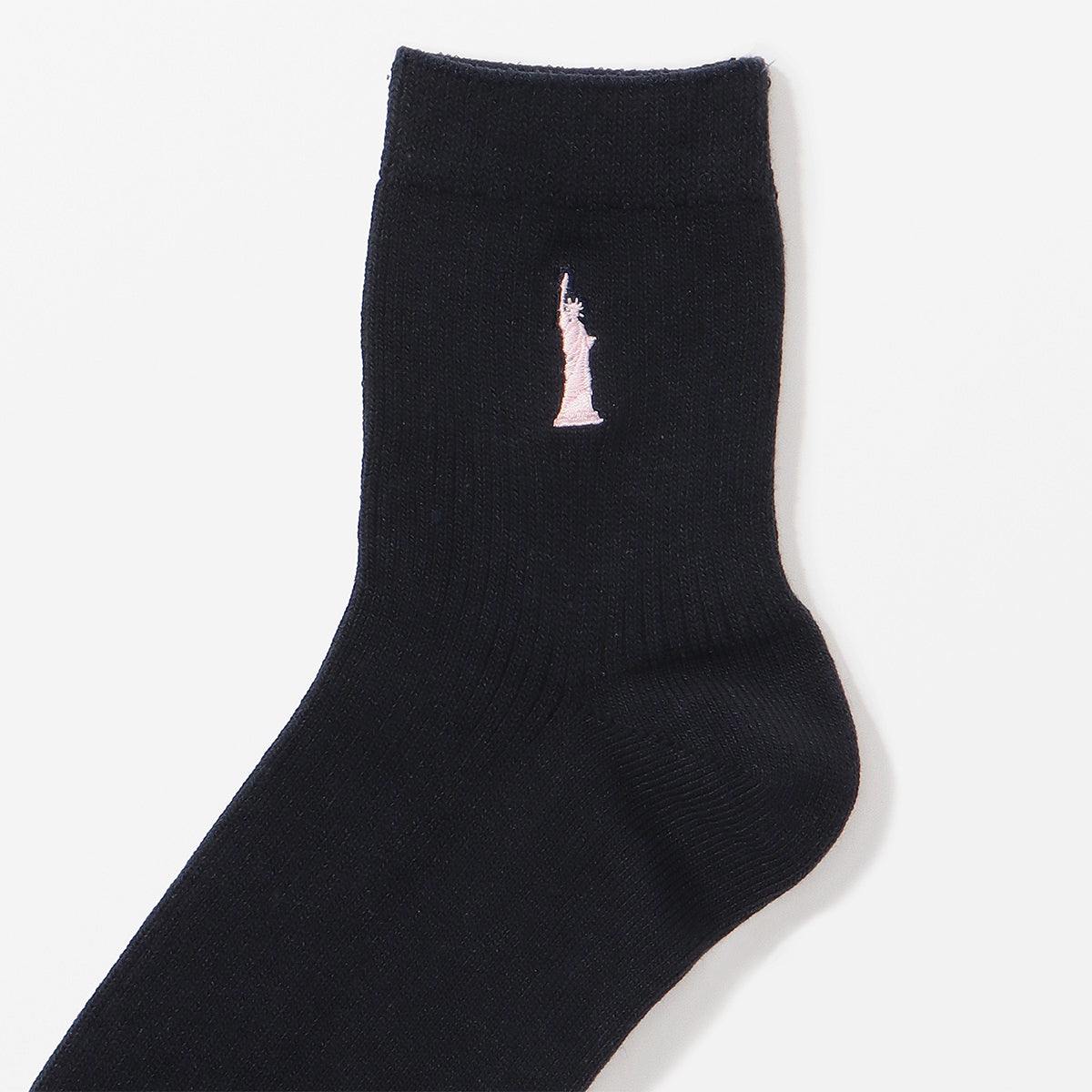 定番の女神マークの刺繍を片面に施したスクールソックス。